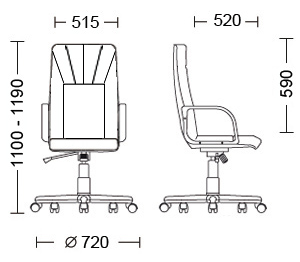 Крісло може бути виготовлене в натуральній шкірі Lux або Split, штучній екожі ECO, RD, а також у тканинах Microfibre і Cagliari (з зразками оздоблювальних матеріалів, а також їхніми забарвленнями Ви можете ознайомитися нижче або в розділі Фотогалереї/Віддільні матеріали крісел для офісу). Модель обладнана механізмом гойдання. Крісло комплектується пластиковими підлокітниками, а також металевою базою з пластиковими накладками. Передбачені два різновиди роликів — для м'яких (килимових покриттів) і твердих (паркет, ламінат) покриттів. На неробочих поверхнях допускається використання штучної шкіри.