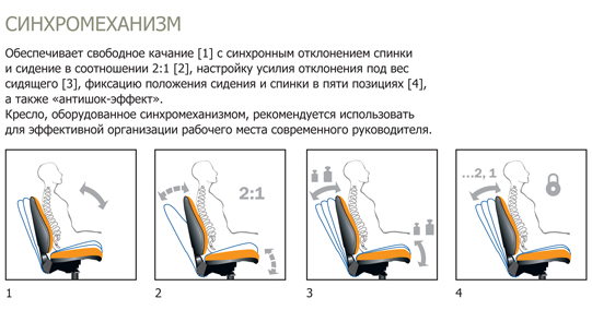 Крісло обладнане «Cинхромеханізмом», має широкі комфортні сидіння і спинку, а також великі підлокітники з накладками, виготовленими з масиву дерева